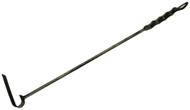 КОЧЕРГА играет важнейшую роль среди всех принадлежностей для камина. Она служит для ворошения углей, раскалывания поленьев, пробивания застрявших в решетке колосников углей. Длина кочерги может быть разной, в зависимости от высоты сервитера, но не меньше 70 см (как правило, она колеблется в пределах от 50 до 70 см). Вообще длину кочерги, как, собственно, и всего каминного набора, подбирают, исходя из роста обладателя камина. Очень важной деталью кочерги является ее ручка. Она может быть различной по форме, при ее изготовлении могут использоваться такие материалы как металл, керамика, кость, различные сорта дорогого дерева. Каминная кочерга должна быть прочной, в меру массивной и цепкой. Ручка кочерги для камина, как и любой другой кочерги, должна обеспечивать надлежащую термоизоляцию, чтобы ее рабочий конец мог достаточно долго находиться в огне не приводя к ожогам руки держащего кочергу.
